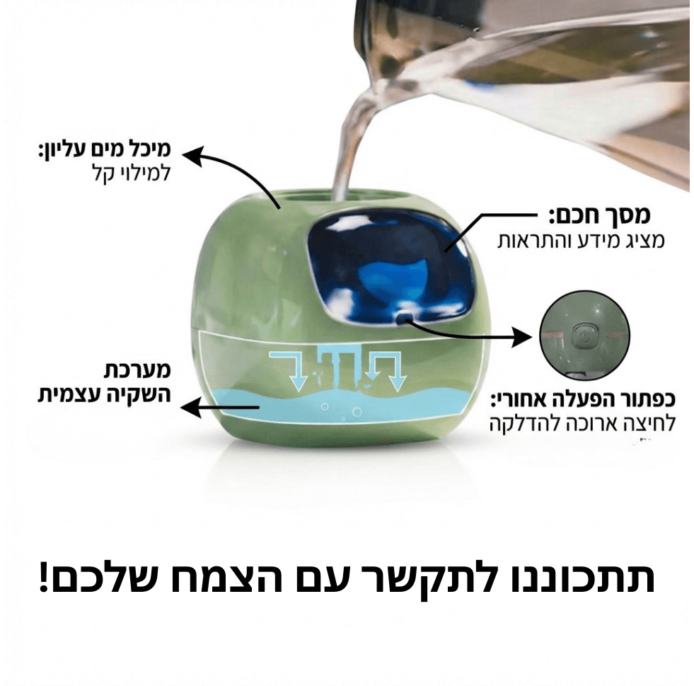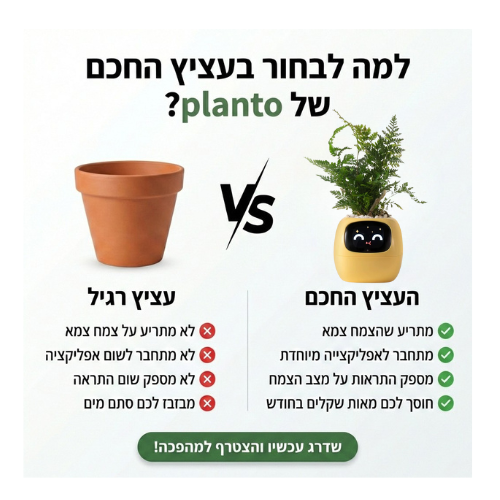 התשובה מאוד פשוטה: המערכת הטכנולוגית של העציץ מחוברת לאפליקציית השקייה מיוחדת שברגע רכישתו של העציץ אתם תקבלו גישה מלאה אליה והיא מעדכנת אתכם מתי צריך בדיוק להשקות ומתריאה לכם כמה מים הוא צריך כל השקייה בהתאם למזג אוויר ותנאים סביבתיים כדי שתהיו בטוחים שאתם לא שופכים אפילו טיפה אחת מיותרת של מים.